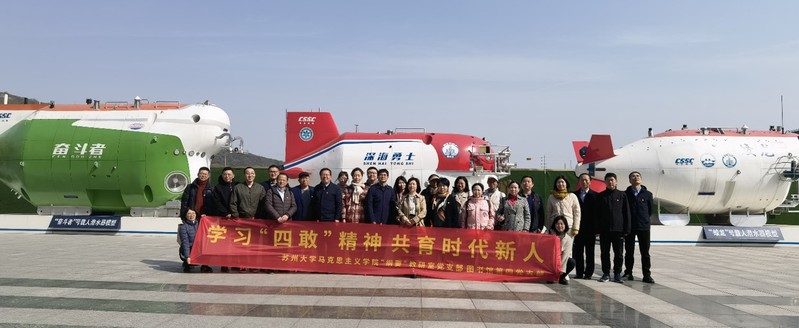 为弘扬“敢为、敢闯、敢干、敢首创”的“四敢”精神,全面贯彻落实党的二十大提出的“实施科教兴国战略,强化现代化人才支撑”的精神要求,自觉肩负培养担当民族复兴大任时代新人的历史使命。2023年3月16日,91自拍 “纲要”教研室党支部与图书馆第四党支部赴无锡深海技术科学太湖实验室、荣氏梅园“廉洁文化教育专线”、荣毅仁纪念馆联合开展“弘扬‘四敢’精神,共育时代新人”主题党日活动。