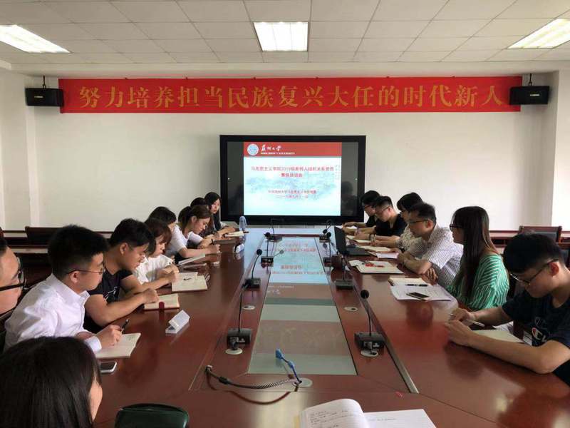 2019年9月11日下午在6418学院会议室,学院党委、研究生党支部共同与2019级新转入组织关系党员进行集体谈话。学院党委书记张才君、组织人事秘书刘媛媛、研究生党支部书记金鑫与新转入组织关系的13名党员参加了会议。