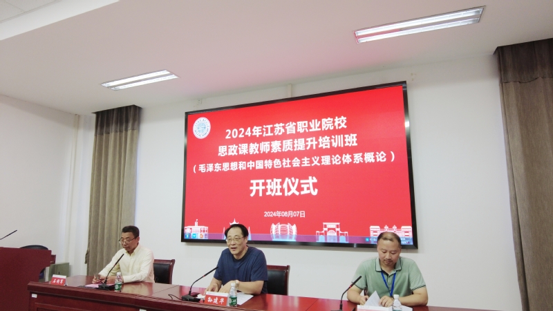 87日上午,2024年江苏省高等职业院校思政课教师素质提升培训班(毛泽东思想和中国特色社会主义理论体系概论)在91自拍 本部培训中心105正式开班。镇江市高等专科学校学员代表高雨耀老师,91自拍 院长孙建华、宣讲与培训中心办公室副主任石利军出席开班典礼。仪式由石利军主持。