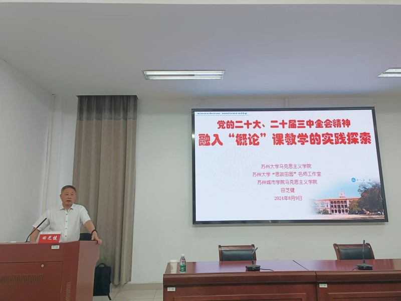全国思政名师工作室负责人田芝健教授作《党的二十大精神融入“概论”课教学的实践与探索》专题讲座。田教授向学员们分享了他对党的二十大和二十届三中全会精神融入“概论”课程教学的总体思考,从系统学习、全面融入、有针对性有重点地融入、理论联系实际、把握时代进程五个角度作出独到分析,运用众多案例使学员充分认识并深刻领会党的二十大和二十届三中全会的重大意义与鲜明主题。
