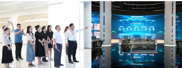 协鑫集团党委委员、党群工作部主任费忠书记带领实践团队成员参观协鑫未来能源馆,详细讲解了协鑫集团在绿色低碳能源科技等方面的研发智造、数字平台建设情况以及企业推进产学研合作、促进科技成果落地转化的成功做法。绿色能源科技之光与数字运营先进理念交相辉映,充分展现能源变革进程中的技术突破和创新实践。