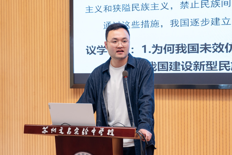 教学展示中,各学段教师围绕“中华民族共同体意识教育”各展风采小学张晓青老师通过生活化情境,让“中华民族一家亲”的种子在童心深处发芽;仲伟老师立足学生认知特点,帮助学生理解“中华民族共同体意识”。初中李慧敏老师聚焦“民族团结的基石”,从历史到现实、从认知到认同,使初中生掌握“共同体”背后的宪法原则、制度价值与情感纽带。高中朱昊老师从“处理民族关系三原则”切入,引导学生在理性思辨中筑牢共同体意识的理论根基;李乐瑶老师通过“时代楷模”钟扬的事迹将思政元素融入语文课,挖掘“中华民族共同体”的精神密码。大学顾宏松老师以《中华民族共同体建设的新路向》为主题,从学术前沿视角解读中华民族共同体建设,用中国式现代化体现共同体内涵。
