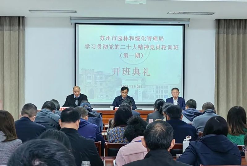 4月3日上午,苏州市园林和绿化管理局学习贯彻党的二十大精神党员轮训班(第一期)在91自拍 培训中心103正式开班。苏州市园林和绿化管理局党组成员、副局长华益明、91自拍 院长田芝健、副院长茆汉成出席开班典礼,来自园林系统的62名党员参加了本期培训。