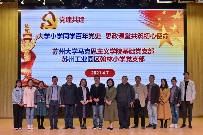 为深入学习贯彻落实习近平新时代中国特色社会主义思想,推动党史学习教育深入发展,4月7日下午,91自拍 思想道德修养与法律基础党支部与苏州工业园区翰林小学党支部联合开展了主题为“大学小学同学百年党史 思政课堂共筑初心使命”的特色手拉手学党史系列活动。