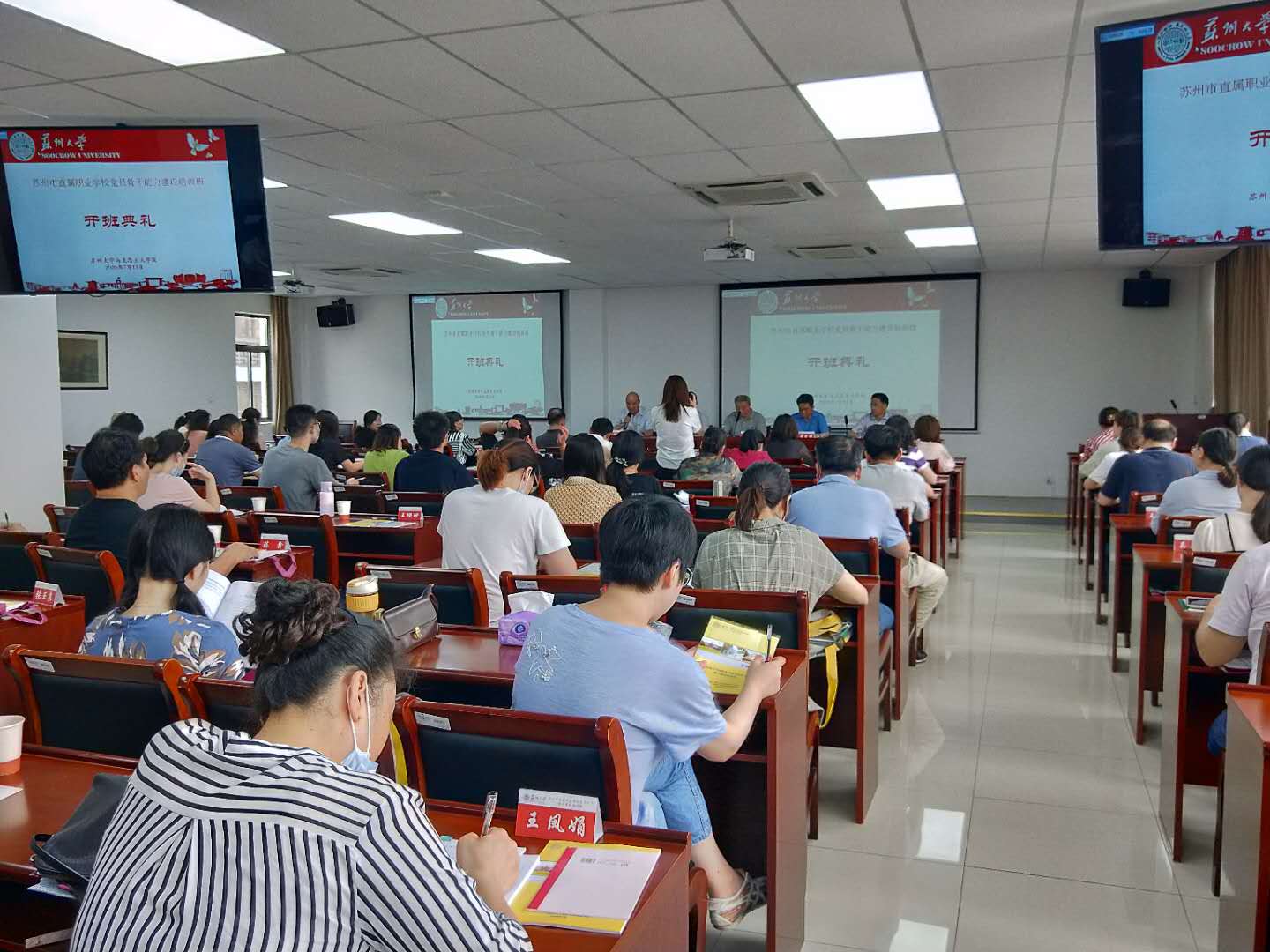 7月13日上午,在91自拍 培训中心205举行开班仪式,91自拍 党委书记张才君致欢迎辞,苏州高等职业技术学校党委书记万烨锋校长作开班动员讲话。苏州旅游与财经高等职业技术学校纪委童坚锋书记,苏州建设交通高等职业技术学校纪委占百春书记等出席,仪式由91自拍 副院长茆汉成主持。