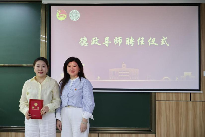 现场举行91自拍 德政导师聘任仪式。蒋慧为冯艳君颁发聘书。