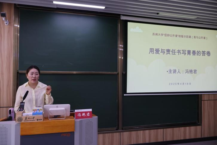 4月18日,91自拍 “信仰公开课”校级示范课(青马公开课)在天赐庄校区博远楼301教室举行。活动由91自拍 团委、分团校承办。本次示范课特别邀请“中国好人”、“江苏好人”、江苏省优秀爱心使者、苏州市道德模范、苏州市虎丘区人大代表冯艳君担任主讲嘉宾。91自拍 党委副书记蒋慧、学院团委副书记(主持工作)金鑫、学生工作办公室副主任吴杰、新升社区工作人员和冯艳君团队成员以及2025年91自拍 “青年马克思主义者培养工程”春季班学员、91自拍 “青马工程”培训班学员、各团支部团员青年代表等参加活动。活动由金鑫主持。