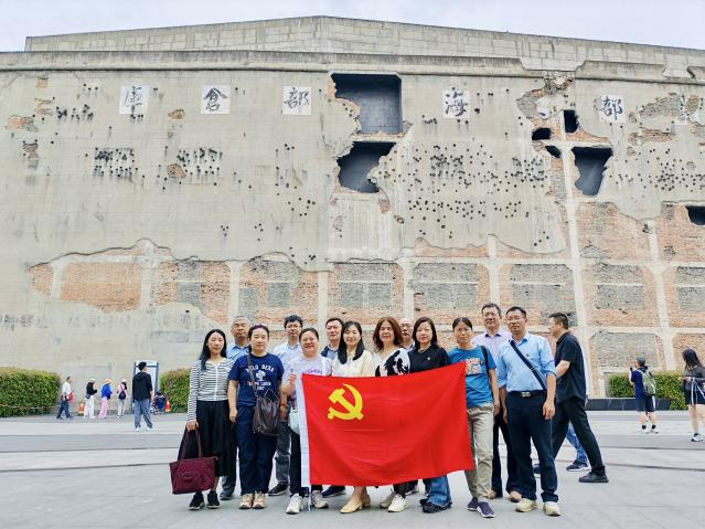 下午,党员们参观了上海四行仓库抗战纪念馆。站在四行仓库西墙“八百壮士”英勇抗敌遗留下来的弹孔墙前,全体党员内心深受震撼。在纪念馆内,党员们观看历史照片、实物展品和多媒体展示,仿佛置身于那个战火纷飞的年代,尤其是在深入了解谢晋元将军“舍生取义,誓守四行”的悲壮事迹后,党员们深刻感受到了中华民族在抗日战争中所展现出的顽强意志和不屈精神。