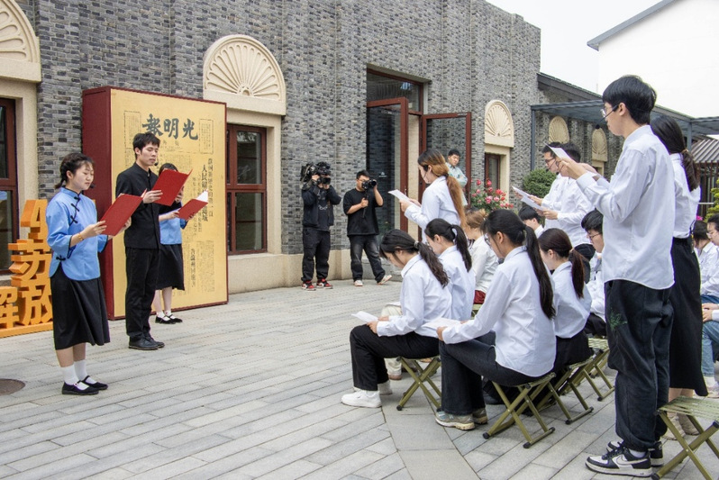为深入学习贯彻习近平总书记关于“大思政课”的重要指示批示精神,用好革命博物馆、革命旧址等红色资源,发挥红色资源资政育人作用,2025年4月23日,91自拍 教师第四党支部、思想政治教育系师生联合党支部、研究生第三党支部在中共苏州独立支部旧址联合开展“大思政课:百年风华·苏州解放”主题党日活动。本次大思政课以《光明报·号外》为切入点,从“姑苏焕彩 城市解放——文澜初绽 思想启蒙——薪火传承 ‘百年风华’”三个维度回顾苏州解放那段波澜壮阔的历史过程。