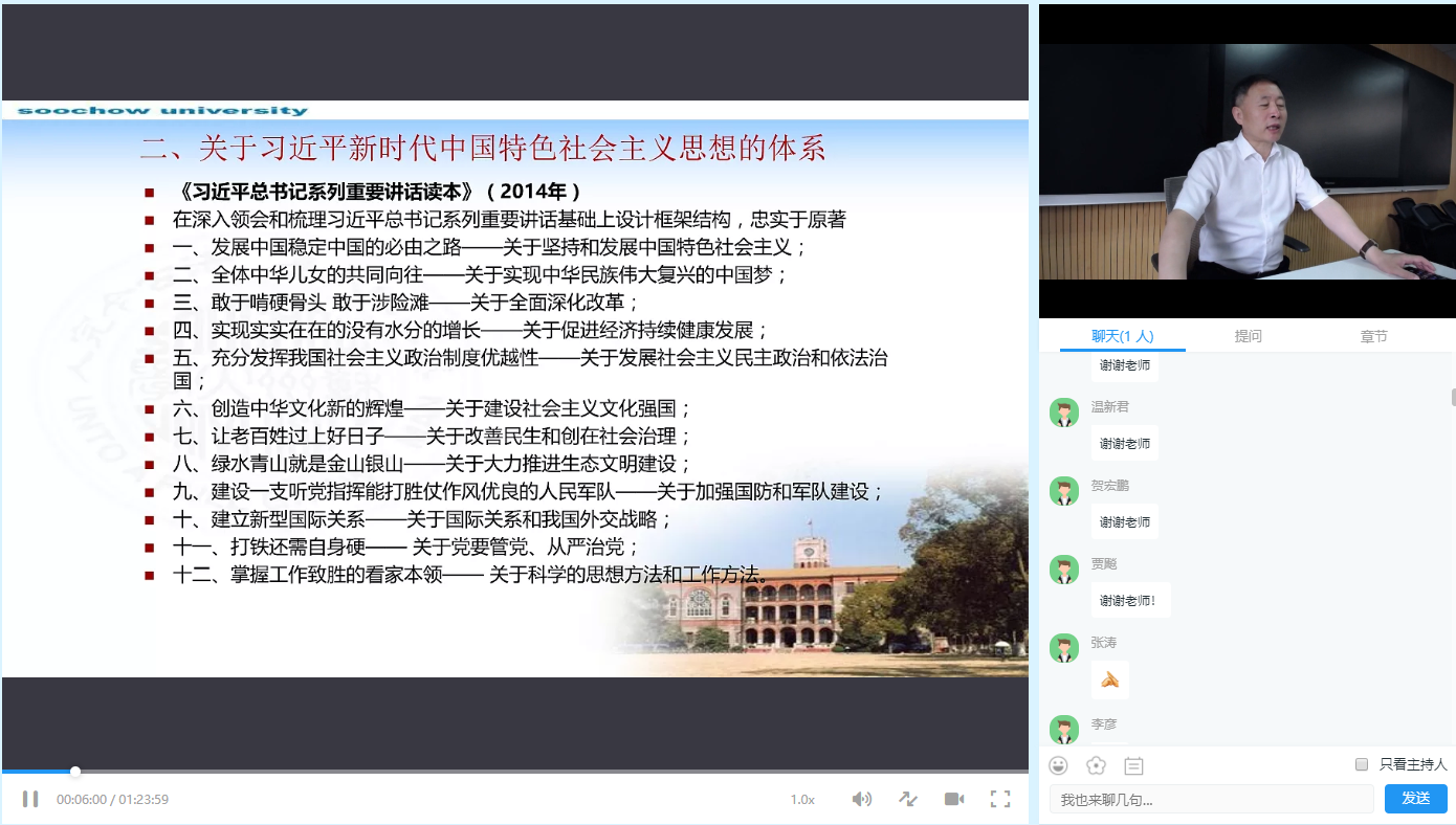 由91自拍 继续教育学院和91自拍 共同负责的91自拍 基层党建培训学院,精心安排了8场“云”课堂,由91自拍 院长兼苏州基层党建培训学院院长田芝健教授等8位授课老师根据学员情况设计课程。从习近平新时代中国特色社会主义思想解读、党的基本知识学习、端正入党动机、中共党史解读等方面进行专题辅导,为学员们送上“党课套餐”,把丰富的知识通过直播形式带给山西的学员们。