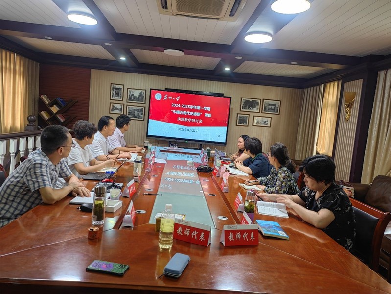 8月27日,与会教师围绕“纲要”课程实践教学进行集中研讨。大家共同观看学习本学期课程实践教学成果,严格把关,推选优秀微视频上传实践教学展示平台“苏大小微”,为新学期学生开展实践教学提供学习范例。老师们研讨完善新学期课程实践教学计划、评价标准,一致认为要立足教材、深挖本地历史资源、不断创新丰富实践主题,增强课程实践的广度和深度,引导学生真正走进社会大课堂。按照学院《思想政治理论课实践教程》编写要求,与会教师结合“纲要”课程性质特点,重点围绕模块设计、内容选择和考核要求等进行讨论,确定了12项实践主题。