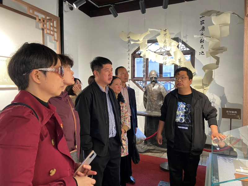 在柳亚子纪念馆文博馆员张杰的带领下,党员们走进柳亚子故居展厅,仔细参观学习展厅陈列的大量图片、实物和史料,深刻感悟柳亚子先生诗人的一生、学者的一生、革命战士的一生,传承其爱国主义精神和革命斗争精神,学习他独立的气节和高尚的人格。在毛啸岑旧居,党员们沿着历史的足迹领略中国农工民主党在吴江的早期发展历程,了解新南社成员毛啸岑的生平事迹。
