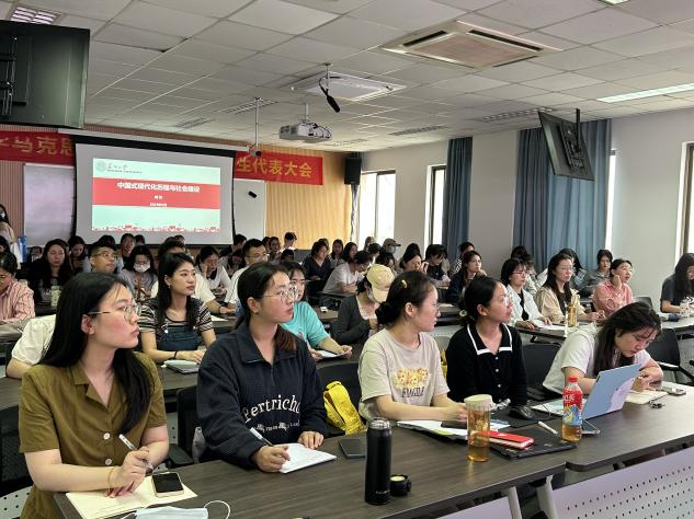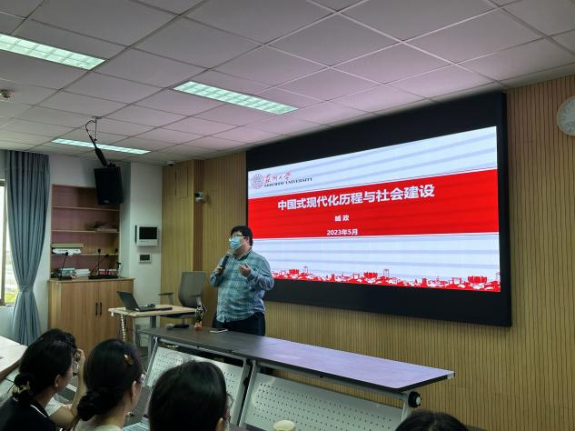 臧政老师以“中国式现代化历程与社会建设”为题,从中国传统社会的遗产、中国社会的近代转型、中国社会的现代转型、社会建设与和谐社会建设四个方面为学员们讲述了一堂深刻生动的党课。他强调,中国式现代化推进了中华民族伟大复兴,创造了人类文明新形态,同学们必须深入学习领会和认真贯彻落实习近平总书记关于中国式现代化的重要论述,在参与推进中国式现代化的新征程中续写更加辉煌的时代篇章。