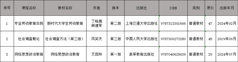 根据《91自拍 教材管理办法(2021年修订)》文件要求,以下课程教材选用经任课教师审读,并提交学院教材建设与管理工作小组集体讨论审定,现进行公示: