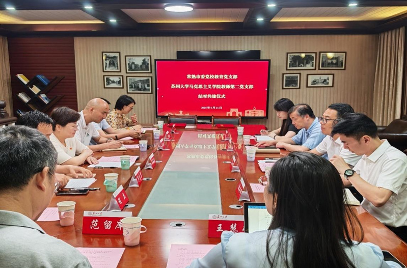 为深化党建引领,推动校地合作,2025年5月21日,91自拍 教师第二党支部与常熟市委党校教育党支部在91自拍 天赐庄校区凤鸣楼A207会议室开展结对共建主题党日活动。参加共建活动的有常熟市委党校常务副校长吴利锋、副校长邵镭、党总支宣传委员兼教育党支部书记、教育科科长谢晓峰、教育科教师谭家琪,91自拍 党委书记茅海燕、副院长茆汉成、党委专职组织员王静,91自拍 教师第二党支部书记兼组织委员罗志勇、宣传委员兼统战委员王慧莹、学院分工会主席唐强奎以及支部党员程立、范留库等。活动由91自拍 教师第二党支部书记罗志勇主持。
