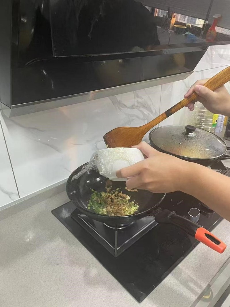 图为:华夏同学学习制作菜肴