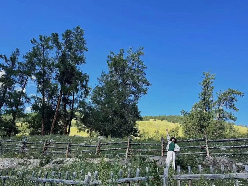 图为:刘奕辰同学在新疆的掠影