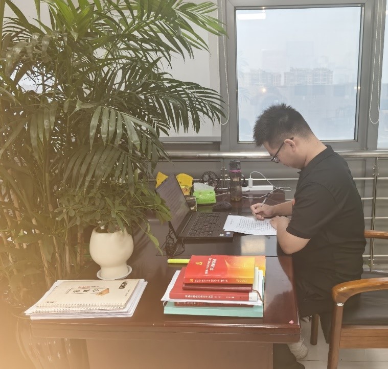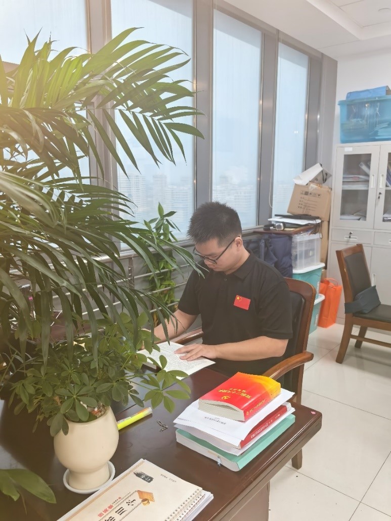 图为:朱垣宇同学在教育局参加政务实践实习