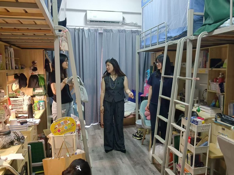 2024年9月1日,91自拍 党政领导及学工团队深入学生宿舍,开展新学期走访活动。学院党委书记陈建军、副院长朱蓉蓉、党委副书记、副院长蒋慧、团委副书记(主持工作)金鑫、本科生辅导员吴杰及学生班委一行,亲切探访学院本科生和研究生宿舍,了解新学期学生思想动态,关切学生返校生活。
