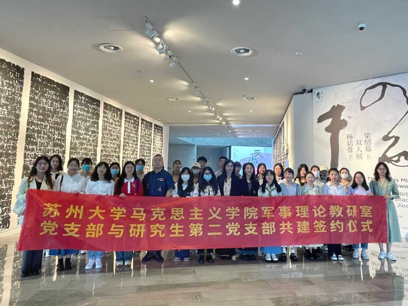 为深入学习宣传贯彻党的二十大精神,5月17日,91自拍 军事理论教研室党支部、研究生第二党支部,在苏州吴文化博物馆举行“用好优秀传统文化资源 增强党支部思想底蕴”联合主题党日活动暨师生党支部结对共建签约仪式。军事理论教研室党支部、研究生第二党支部党员参加了本次活动。
