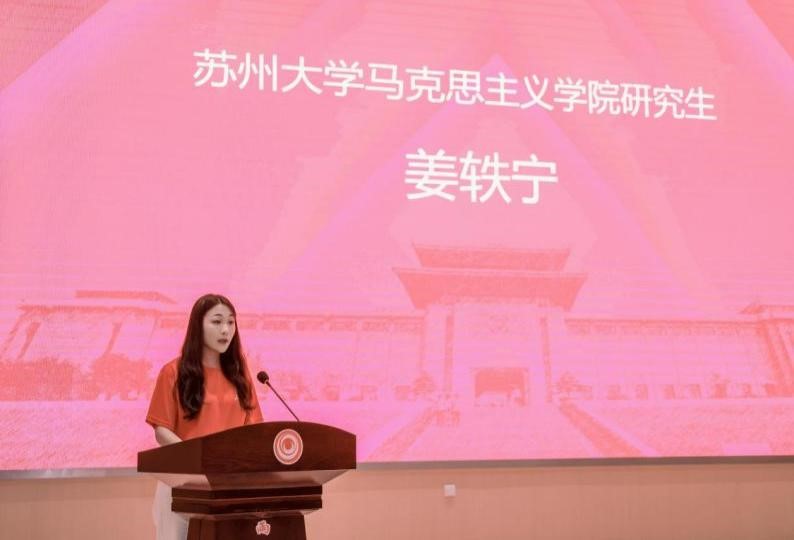 在结营仪式上,2023级硕士研究生姜轶宁作为代表进行总结发言。她指出通过培训从雨花英烈事迹中汲取强大精神力量,对“雨花英烈事迹与精神宣讲”应该讲什么、如何讲有了深入理解,今后要以英烈精神为指引,继承先辈的遗志,拼搏奋斗,为强国建设、民族复兴贡献自己的力量。
