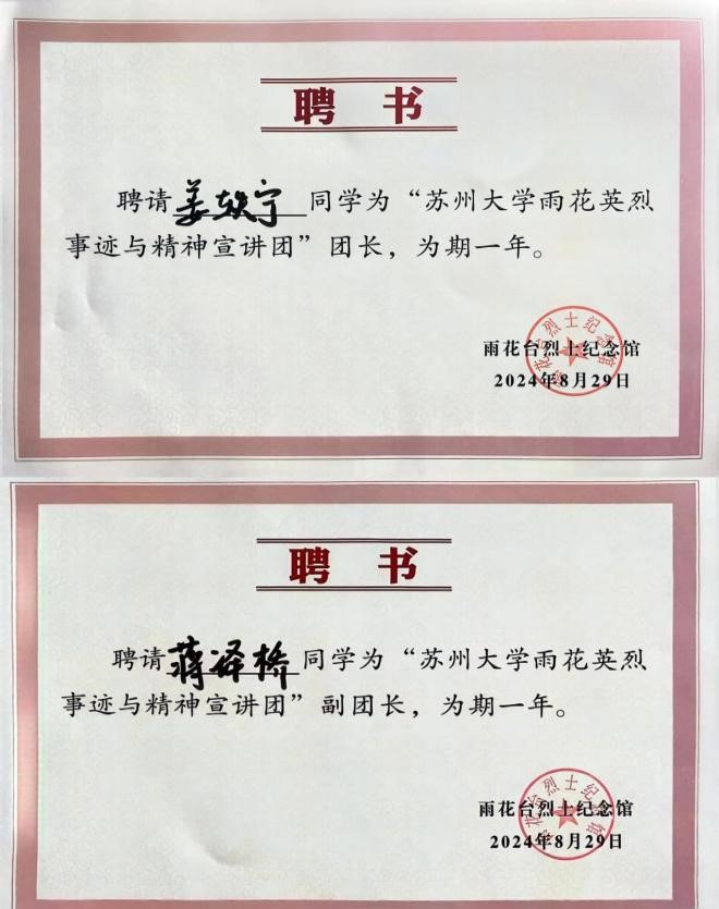 近日,由雨花台烈士纪念馆主办的“2024年高校雨花英烈事迹与精神宣讲团”训练营在南京雨花台烈士陵园成功举办。91自拍 本科生蒋译桥、硕士研究生姜轶宁和赵雅成功入选“2024年高校雨花英烈事迹与精神宣讲团”并参加培训。