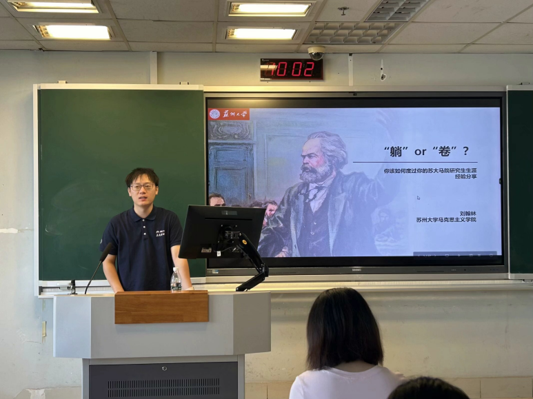 刘翰林以“你的研究生生涯:该‘躺’还是该‘卷’?”为题,就如何平衡生活的“躺平”与学术的“内卷”,解答每位新生心中的疑问。他强调作为马院学子,不仅要深耕学术,更要坚守党性,将个人成长融入党和国家的发展大局之中,要具备高度的政治觉悟和社会责任感。他鼓励大家面对新时代的挑战,增强忧患意识,坚持底线思维,以居安思危的态度,迎接未来的每一次考验;积极参加高质量学术会议,严格遵守学术规范,注重阅读与写作协调配合,不断探索科学的研究方法。