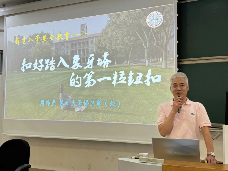 周伟虎通过分析近年来校园内外发生的各类安全案例,让新生们直面现实,认识到安全问题的严峻性和复杂性。他强调,现实案例屡屡敲响警钟,安全无小事,防范需先行,大学校园具有开放性和多元性,新生们在这里不仅要面对学习上的挑战,更要学会如何在复杂的环境中保护自己,提高自我保护能力,要从自身做起,从小事做起,将安全意识融入到日常生活的每一个细节中。