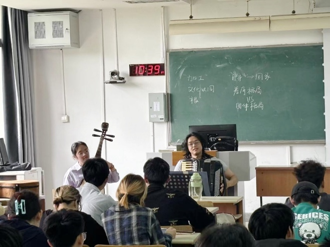 最后,顾梦婷博士立足苏州地域文化特色,以诗词鉴赏、文学赏析、器乐演奏等形式,带领学生围绕文化对社会发展的积极作用展开了延伸性讨论。