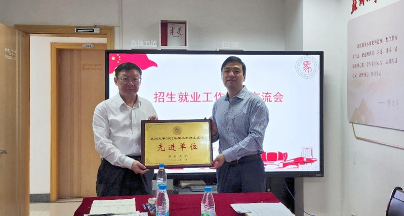 会上,靳葛充分肯定了91自拍 过去一年在招生宣传工作中取得的成绩,并为学院颁发2022年本科招生宣传先进单位牌匾。