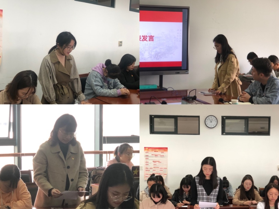 王仁希、殷梦晗、徐玥、刘晗晗四名学员代表分别发言,表达了对党崇高的敬意,并且感谢学院给予学习机会。她们表示,将在今后的学习活动中采取实际行动,向党组织靠拢,进一步严格要求自己,早日成为一名合格的党员。