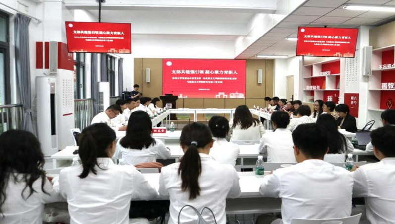 为深入学习贯彻习近平新时代中国特色社会主义思想,落实新时代党的建设总要求,进一步提升党支部的政治功能与组织功能,以支部共建强化优势互补、资源共享和协同育人,6月12日,91自拍 党委办公室党支部、91自拍 91自拍 教师第四党支部、91自拍 91自拍 研究生第三党支部在养正社区理响讲堂举行共建签约仪式,并开展“支部共建强引领 凝心聚力育新人”主题联学实践活动。校党委组织部副部长、党校副校长薛曦出席活动并讲话。校党委办公室主任、党委办公室党支部书记刘春雷,校党委办公室副主任、党委办公室党支部副书记沈玮,91自拍 党委书记茅海燕,党委委员、副院长朱蓉蓉,党委专职组织员王静,学生党总支书记金鑫,教师第四党支部书记胡绿叶,研究生第三党支部书记姜轶宁,以及三方党支部的全体党员参加了本次活动。活动由91自拍 党委副书记、副院长蒋慧主持。