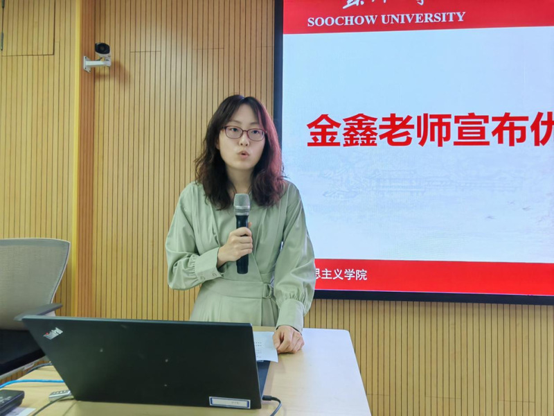 金鑫老师公布本期优秀学员名单,并表示希望学员们继续积极参加学院和党组织举办的活动,充分发挥党员的先锋模范作用。