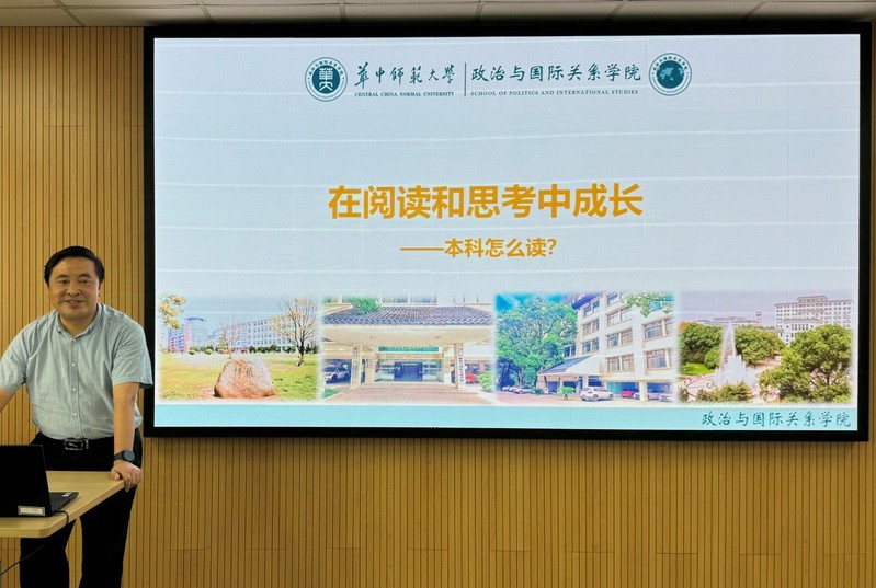 为引导新生养成良好学习方式与学习习惯,学会本科阶段如何读书,10月12日,华中师范大学政治与国际关系学院副院长、教授、博士生导师王建国老师为91自拍 新生带来了一场以“学习与读书”为主题的精彩讲座,2024级本科新生参与了本次活动,讲座由思想政治教育系主任王淼老师主持。