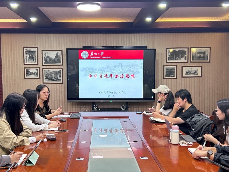 金鑫老师以《学习习近平法治思想》为题,结合真实案例,从三个层面出发进行阐述。她指出,习近平法治思想为我国千秋伟业夯基固本,是引领新时代法治建设的思想旗帜,是全面依法治国的根本遵循和行动指南,蕴含着“党的领导、一切权力属于人民、国家尊重与保障人权、依法治国和权力制约与监督”的宪法精神。她结合道路自信、理论自信、制度自信、文化自信对习近平法治思想的丰富内涵进行概括解读,指明学习习近平法治思想的重大意义。