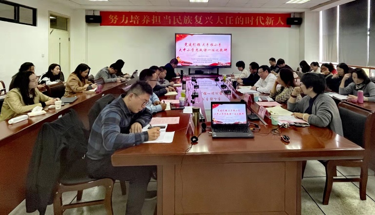 刘雁对高中学段《读本》进行了全面解读,她强调高中落实《读本》教学任务,要优化课堂、充分发挥学生主体作用,使学生提升对习近平新时代中国特色社会主义思想的认识。副院长朱蓉蓉对各学段教师的精彩分享表示感谢,她指出大中小学思政课一体化教研活动针对《读本》展开了有效研讨,有助于各学段思政课教师从纵向一体的角度理解教学内容,有利于各学段思政课教师创新教学方式,充分发挥思政课铸魂育人功能,共同推进落实立德树人根本任务。