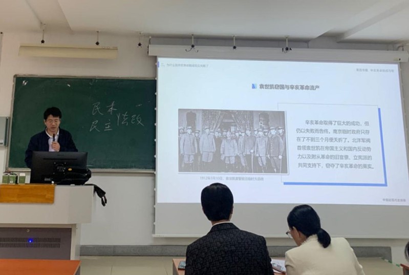 王鹤亭老师以教育部统一课件为基础,运用扎实的马克思主义理论系统阐释了北洋军阀的统治及辛亥革命的失败,深入浅出地分析了“为什么资产阶级共和国方案在中国行不通?”王老师的授课学理性强,内容丰富,线索清晰,课堂具有亲和力和感染力。