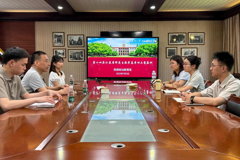 为进一步提升师范生教学实践能力与专业素养,扎实做好第十四届江苏省师范生基本功大赛备赛工作,7月5日下午,91自拍 组织开展第十四届江苏省师范生基本功大赛集训。91自拍 思想政治教育系主任王淼、副主任张建晓、往届大赛获奖代表冯晓盈以及三位参赛同学参加集训。