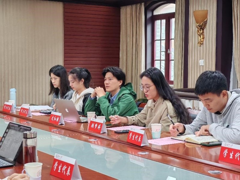 在接下来的交流环节,学院青年教师顾梦婷和史红继分别就自己在研究中遇到的“视角选择”和“研究转型”等问题向胡大平教授请教。胡大平教授以文化研究的方法创新、“悖论”与“AI”的结合等前沿议题为实例,就如何构建研究的基础框架以及如何将专业领域与热点问题融合开展研究等方面提出建议。同时,针对学生代表提出的问题,胡大平教授亦给予了耐心的解答。