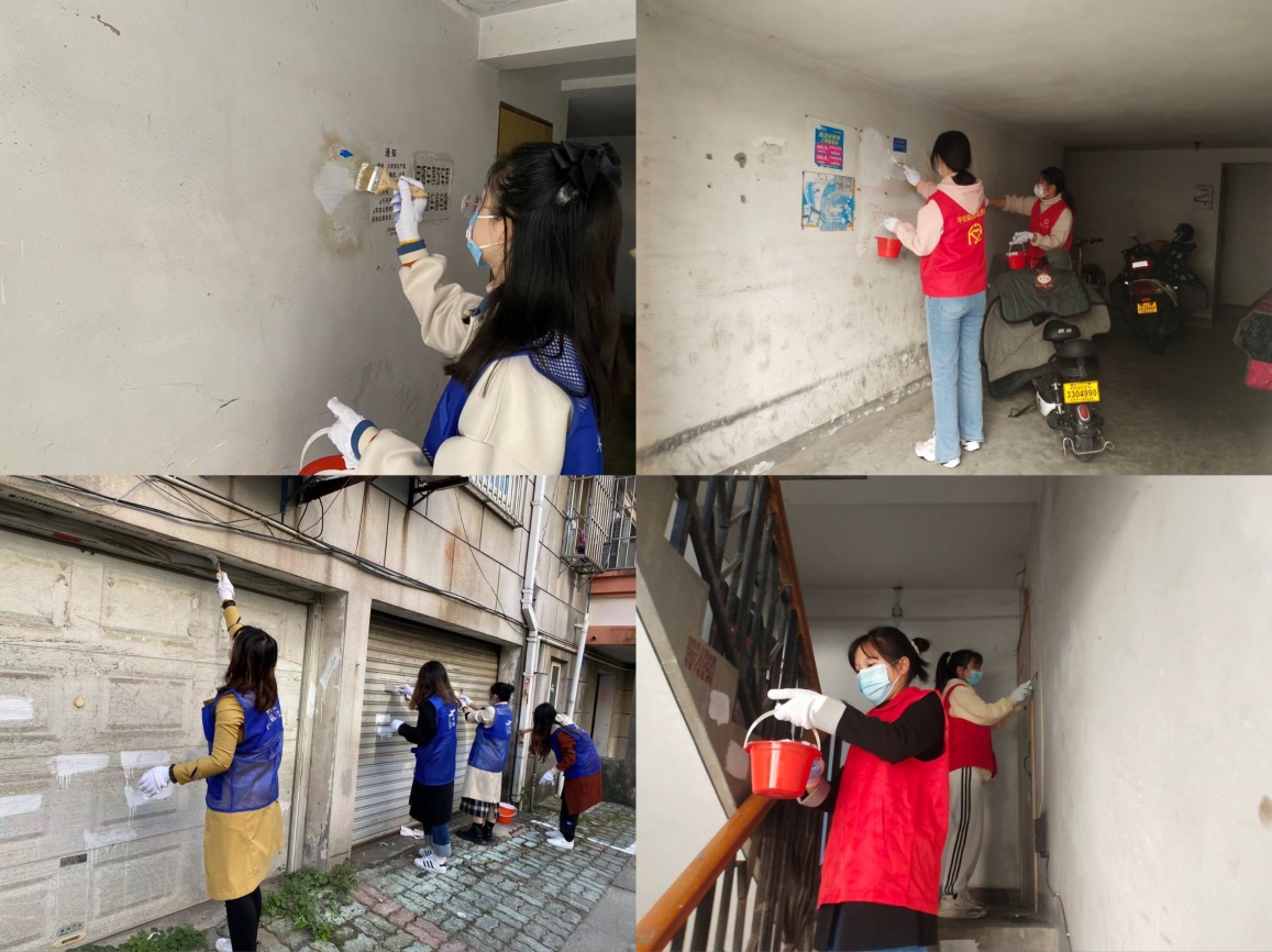 在社区工作人员的带领下,学员们来到三香苑小区,进入各楼道清理张贴的小广告,并为被涂改的墙体重新刷墙漆,努力营造良好的居民生活环境,用实际行动助力建设文明社区。