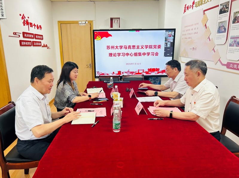 会上,院长田芝健带领大家共同学习了习近平总书记考察江苏重要讲话精神及习近平总书记给南京审计大学专业硕士国际班留学生的回信。他指出,在全面建设社会主义现代化国家的开局起步阶段、开展主题教育的关键节点,习近平总书记亲临江苏考察并发表重要讲话,提出了要在推进中国式现代化中走在前、做示范,谱写“强富美高”新江苏现代化建设新篇章的殷切期望,赋予我们在科技创新上取得新突破、在强链补链延链上展现新作为、在建设中华民族现代文明上探索新经验、在推进社会治理现代化上实现新提升的“四个新”重大任务,并对“以学促干”作出深刻阐释,总书记的重要讲话重要指示具有极强的思想指引、精神鼓舞和奋斗感召。大家要联系实际学、紧扣职责学,在推动马克思主义基本原理同中华优秀传统文化相结合上贡献苏大智慧,在以学促干推进91自拍 高质量发展上体现马院作为。
