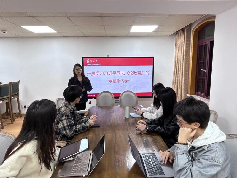 方晶晶为大家介绍了习近平同志《论教育》一书的出版背景、出版内容、出版意义,指出要深刻领会习近平同志《论教育》的时代背景、科学体系、精神实质,要把学习宣传习近平同志《论教育》作为一项重大政治任务,与贯彻落实党的二十届三中全会精神、全国教育大会精神结合起来。学员们积极交流学习感悟,围绕“践行社会主义核心价值观,为建设教育强国贡献青春力量”进行深入讨论。2023级硕士研究生李澄分享了《积极培育和践行社会主义核心价值观》篇目的学习心得,她表示,作为青年一代,我们应该积极响应号召,从日常生活的点滴做起,将社会主义核心价值观内化于心、外化于行。2022级本科生陈磊表示,在学习了《大力弘扬教育家精神,为党育人为国育才》篇目后,作为一名师范生,将牢记习近平总书记的嘱托,以教育家精神严格要求自己,坚持勤学笃行、求是创新;不忘“言为士则、行为世范”,以更加坚毅的姿态、更具担当的作为向成为“四有教师”的愿景努力奋进。