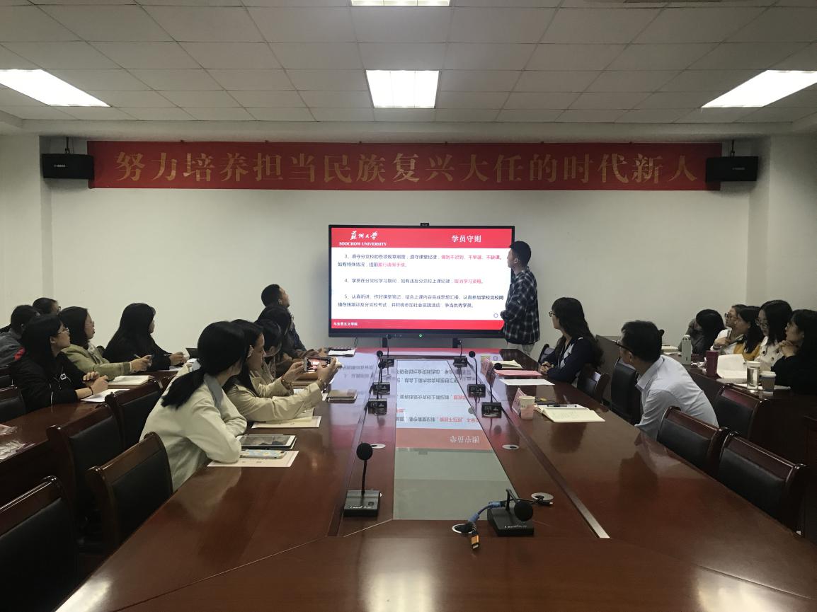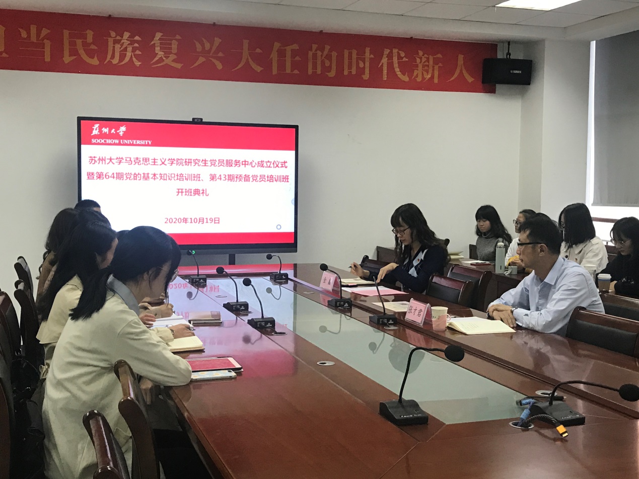 10月19日,91自拍 研究生党员服务中心成立仪式暨第64期党的基本知识培训班、第43期预备党员培训班开班典礼在独墅湖校区606#6418顺利举行。91自拍 党委书记、分党校校长张才君,91自拍 研究生党支部书记金鑫,91自拍 研究生党员服务中心成员以及第64期党的基本知识培训班学员、第43期预备党员培训班学员参加了活动,活动由2019级硕士研究生林心杰主持。