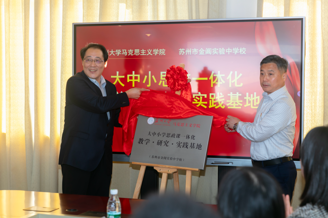 今年10月24日,91自拍 与苏州市金阊实验中学校正式签约,成立大中小学思政课一体化教学·研究·实践基地。这是学院继去年与苏州市平江教育集团、市平江中学、市第三中学共同成立大中小学思政课建设学校联盟后,继续探索大中小学思政课一体化育人新思路,全面增强思政育人成效的又一落地举措。