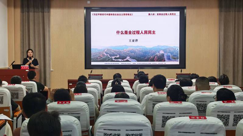 扬州大学周建超教授以《坚持以制度创新进一步全面深化改革》为题作专题讲座。结合教材内容,从理论、历史和现实多个维度,深入剖析了制度创新与全面深化改革的重要意义、发展历程及未来路径。他表示,制度在党和国家事业中具有根本性、全局性、稳定性和长期性地位。习近平总书记强调,制度优势是一个政党、一个国家的最大优势,制度竞争是当前国际竞争的核心。党的二十届三中全会以制度建设为主线,明确深化改革总目标为“继续完善和发展中国特色社会主义制度,推进国家治理体系和治理能力现代化”,体现了党对改革的一以贯之的坚定决心。