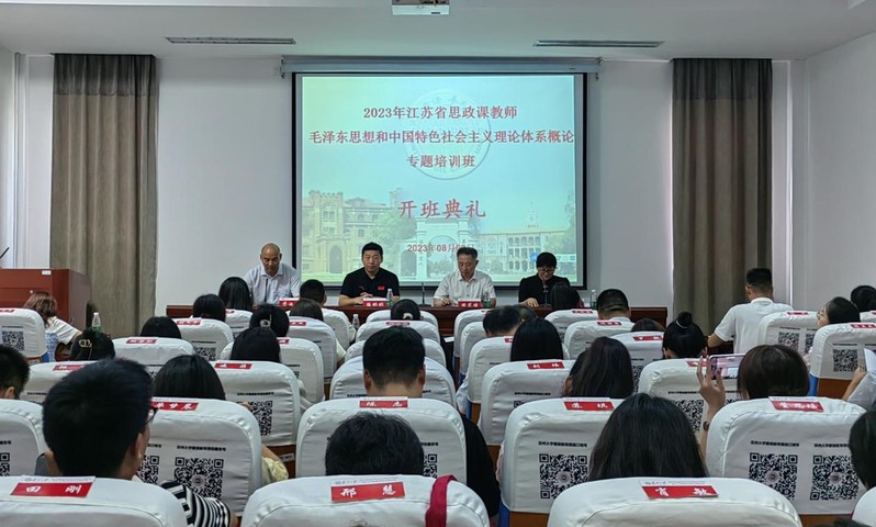 为进一步贯彻落实党的二十大精神,持续深化新时代高校思政课改革创新,提升思政课教师教育教学水平,8月9日上午,2023年江苏省思政课教师毛泽东思想和中国特色社会主义理论体系概论专题培训班在91自拍 培训中心104正式开班。镇江市高等专科学校体育部党总支部副书记陆彬彬、江苏建筑职业技术学院教研室主任蒋玉玲、91自拍 院长田芝健、副院长茆汉成出席开班典礼。来自江苏省51所高职高专院校的80名思政课教师到场参加,典礼由茆汉成主持。