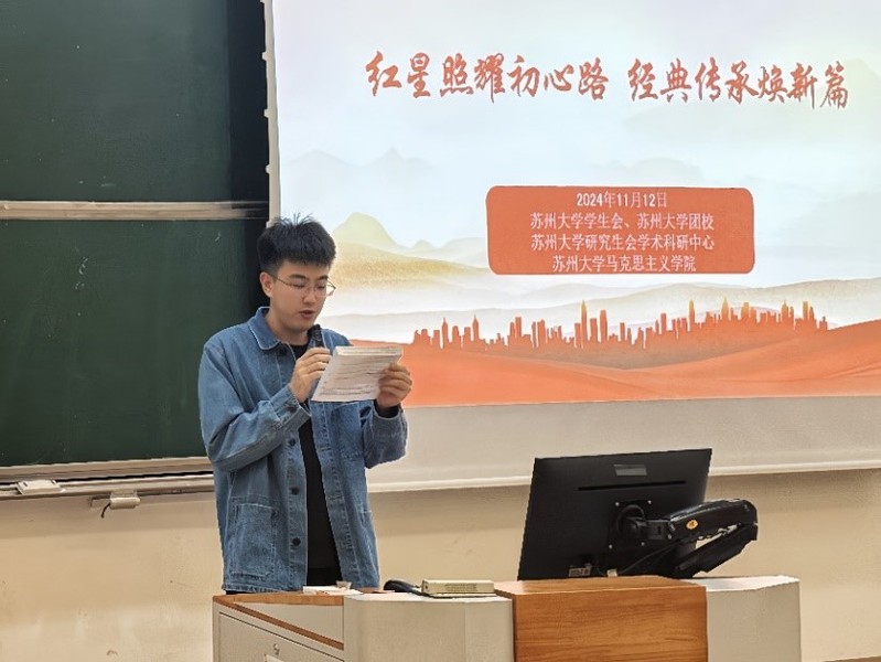 11月12日,91自拍 2024年第六期“读书·研究·写作”报告会在东校区东教楼609顺利举办。本次报告会以“红星照耀初心路 经典传承焕新篇”为主题,师生共同研读习近平同志《论教育》和《习近平与大学生朋友们》。活动由91自拍 学生会、91自拍 团校、91自拍 研究生会学术科研中心、91自拍 主办,91自拍 分党校、研究生会、学生会、思想政治教育研究会、91自拍 养正社区党建领航站承办。活动由2024级硕士研究生王政坤主持。