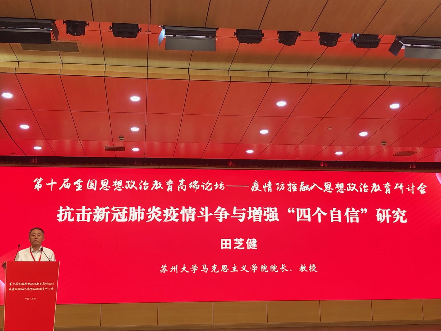 会上,田芝健教授围绕抗击新冠肺炎疫情斗争与增强“四个自信”作了大会发言。他表示,中国共产党领导中国人民进行的英勇抗疫斗争,用实际行动和成效彰显了中国特色社会主义显著优势,是增强中国特色社会主义“四个自信”的鲜活案例。我们要深化对抗疫斗争的研究,积极培育和践行新时代“自信文化”。