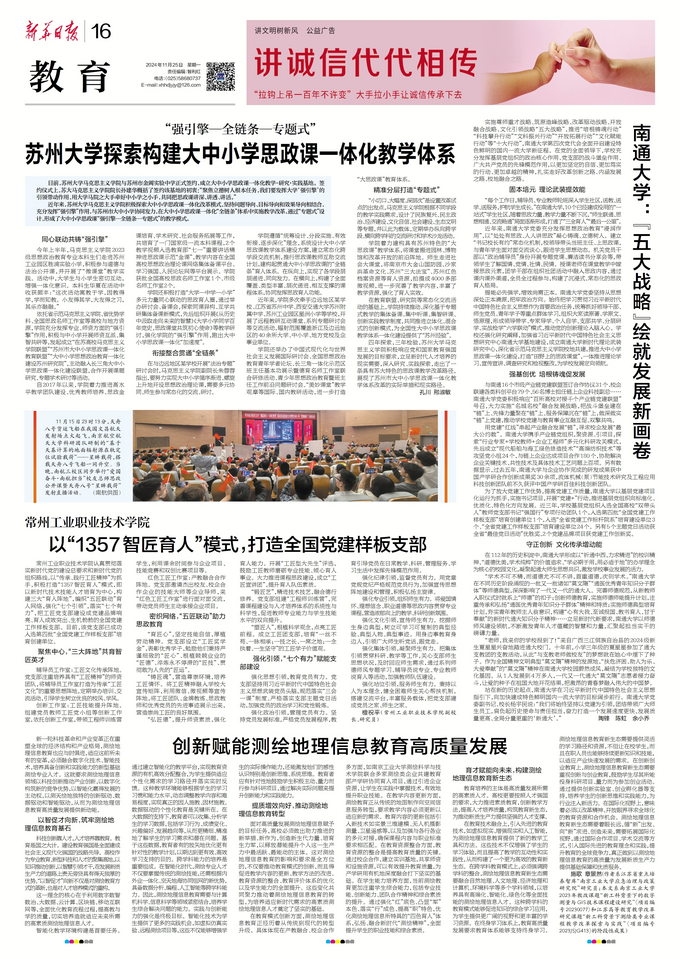 在教育联盟、研究院等常态化交流活动的基础上,学院持续推动、深化基于专题式教学的集体备课、集中听课、集智研课、创新实践教学制度,共同推进立体化、混合式的创新模式,为全国性大中小学思政课教学体系一体化建设提供了“苏州经验”。