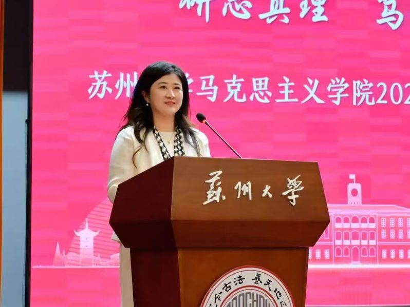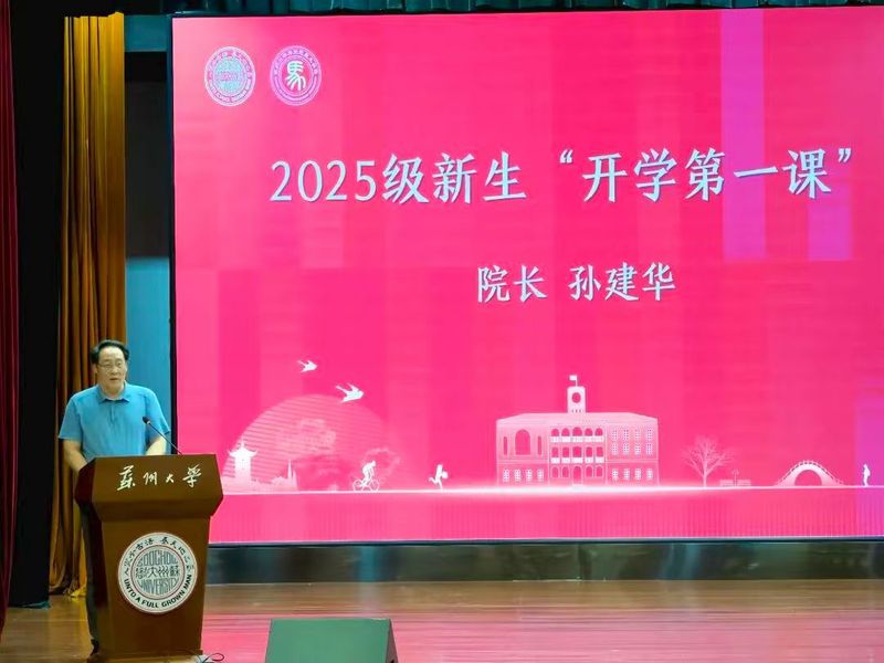孙建华在致辞中,向2025级新生的到来致以热烈欢迎与诚挚祝贺。他围绕人才培养、学科建设、师资队伍、教学科研等方面介绍了学校、学院的情况,寄语同学们在苏大马院这片沃土上汲取知识养分、绽放青春光彩,立志成为马克思主义理论的坚定信仰者、积极传播者与忠实践行者。